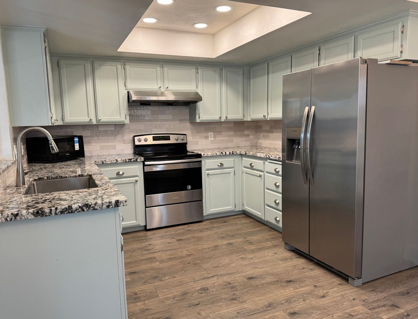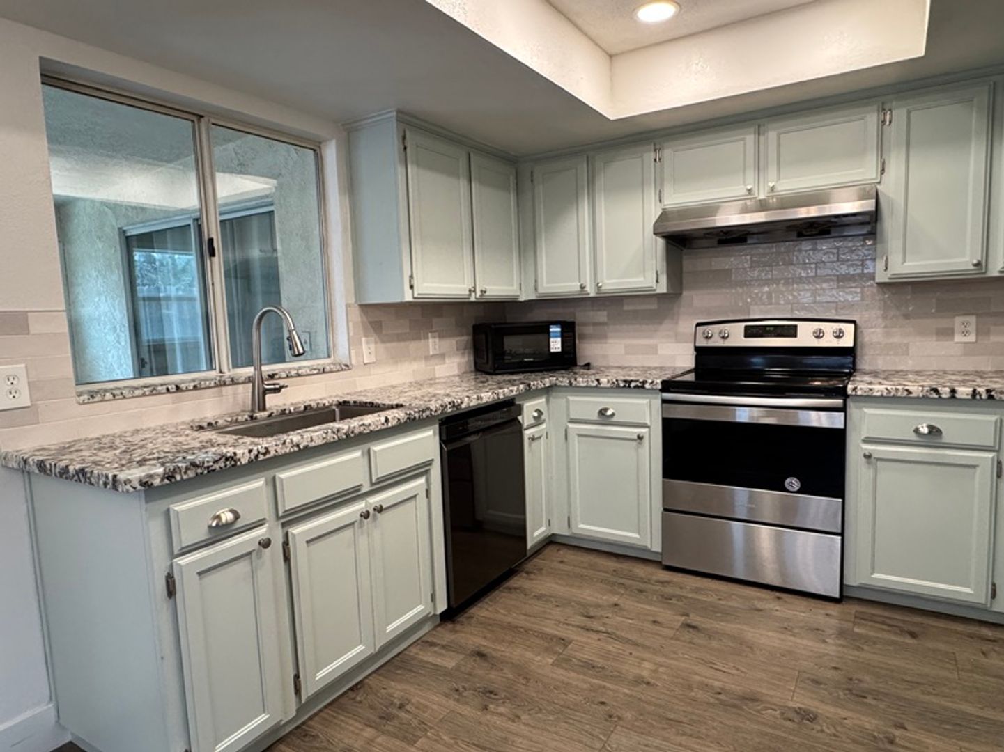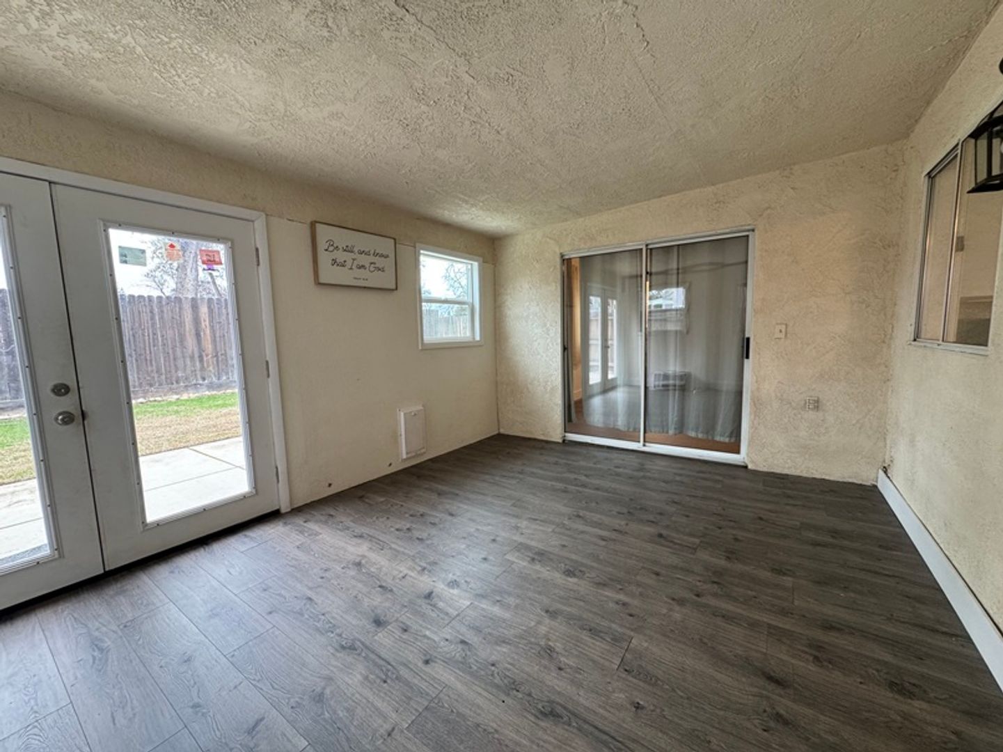 This property boasts two spacious bedrooms and two full bathrooms, perfect for comfortable living. The home features wood-like flooring throughout, adding a touch of elegance and warmth. The spacious kitchen is a culinary enthusiast's dream, offering ample space for meal preparation. The dining area and great room provide the perfect setting for entertaining guests or enjoying a cozy night in. The home also comes with a one-car garage, offering convenience and security. Step outside to a spacious backyard and an enclosed patio, ideal for outdoor relaxation or hosting gatherings. The property is situated in a prime location, close to a variety of restaurants and shopping centers, making everyday errands a breeze. With many upgrades throughout, this home offers a blend of comfort and modern living. Yard care is included.