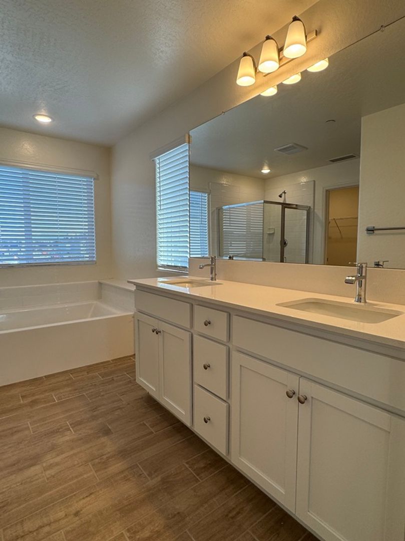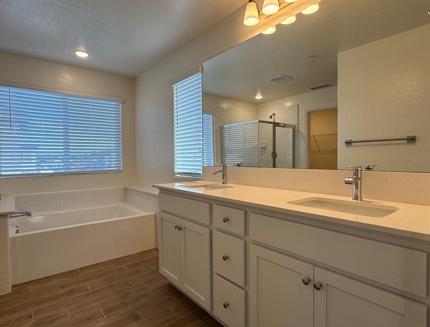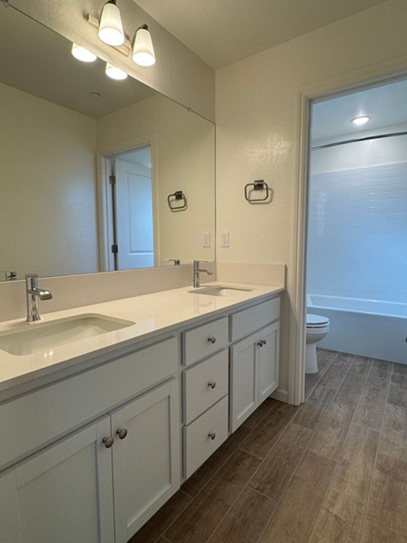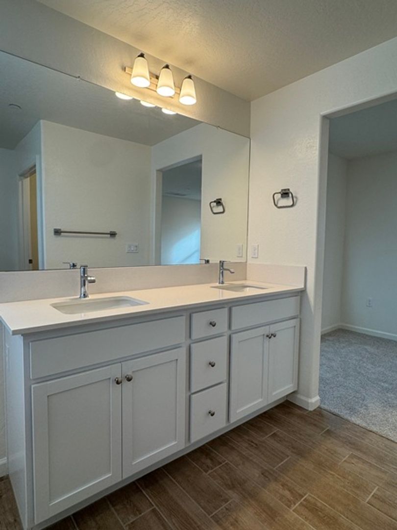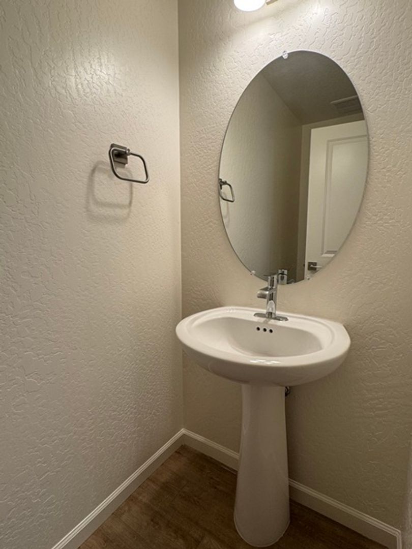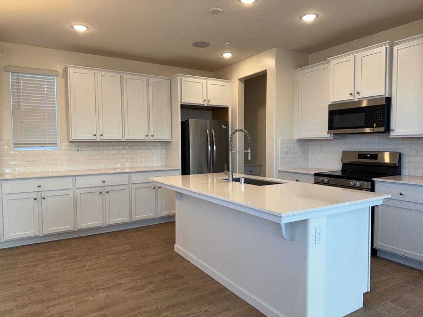 Brand new construction. This stunning home boasts three spacious bedrooms and 2.5 bathrooms, all designed with modern aesthetics and comfort in mind. The two full bathrooms are conveniently located upstairs, along with a dedicated laundry room for ease and convenience. The half bath downstairs is perfect for guests. The large kitchen, equipped with ample cabinets, is a chef's dream, while the dining area provides the perfect space for entertaining. The great room is a versatile space, ideal for relaxation or hosting gatherings. The property also features a two-car garage and a large backyard with low maintenance landscaping. As part of a gated community, residents can enjoy the added security and the community swimming pool. The location is close to restaurants. For outdoor enthusiasts, a bike park and trail head are just across the street.
