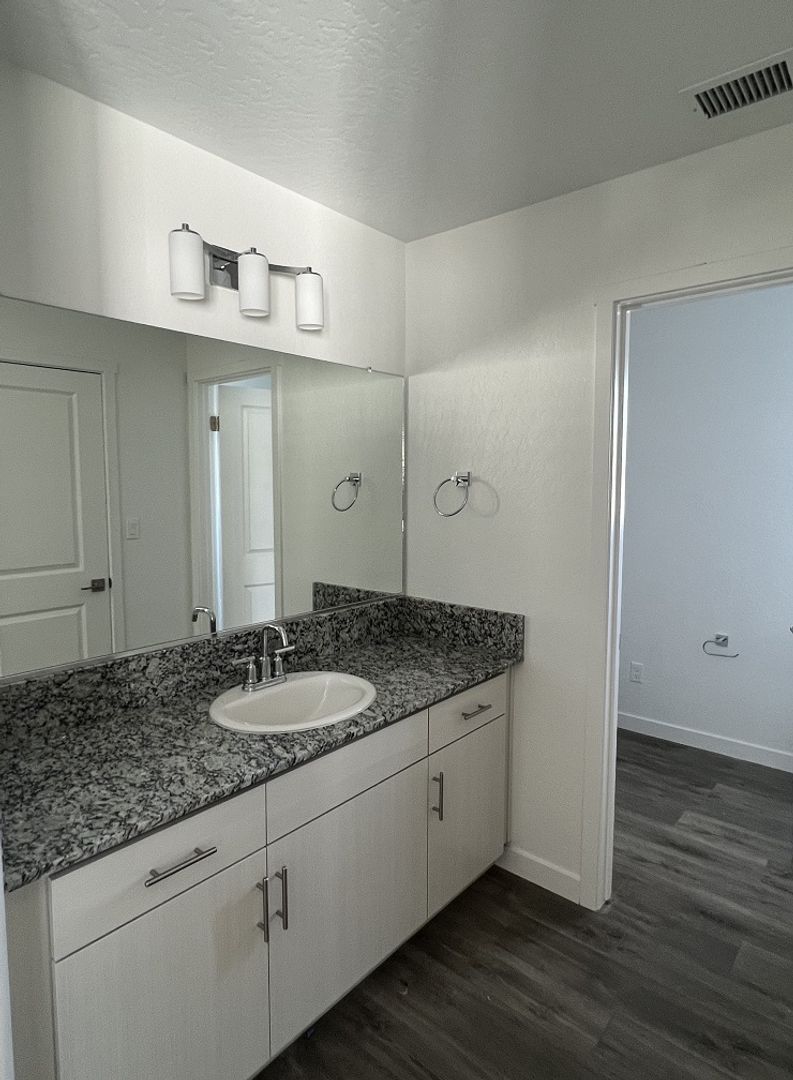 Located near Old Town Clovis off of Bullard and Minnewawa, this cozy 2 bedroom + 1.5 bathroom floorplan home features a living room, kitchen and half bathroom downstairs. Both bedrooms are located upstairs, each with its own private vanity area and a separate jack and jill shower/toilet area. It has a nice small loft area that would be perfect for a desk or sitting area, an upstairs laundry room, and an attached one-car garage. Solar is included to help reduce your monthly PG&E bills!