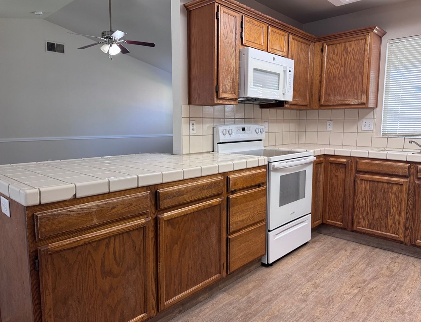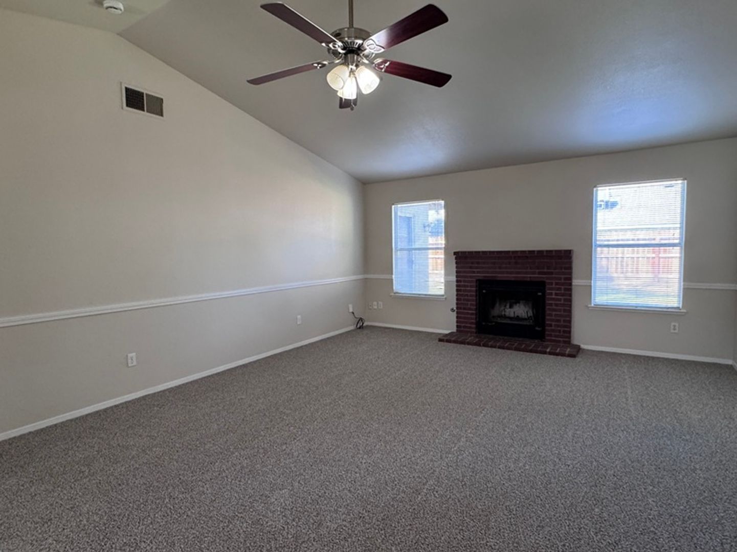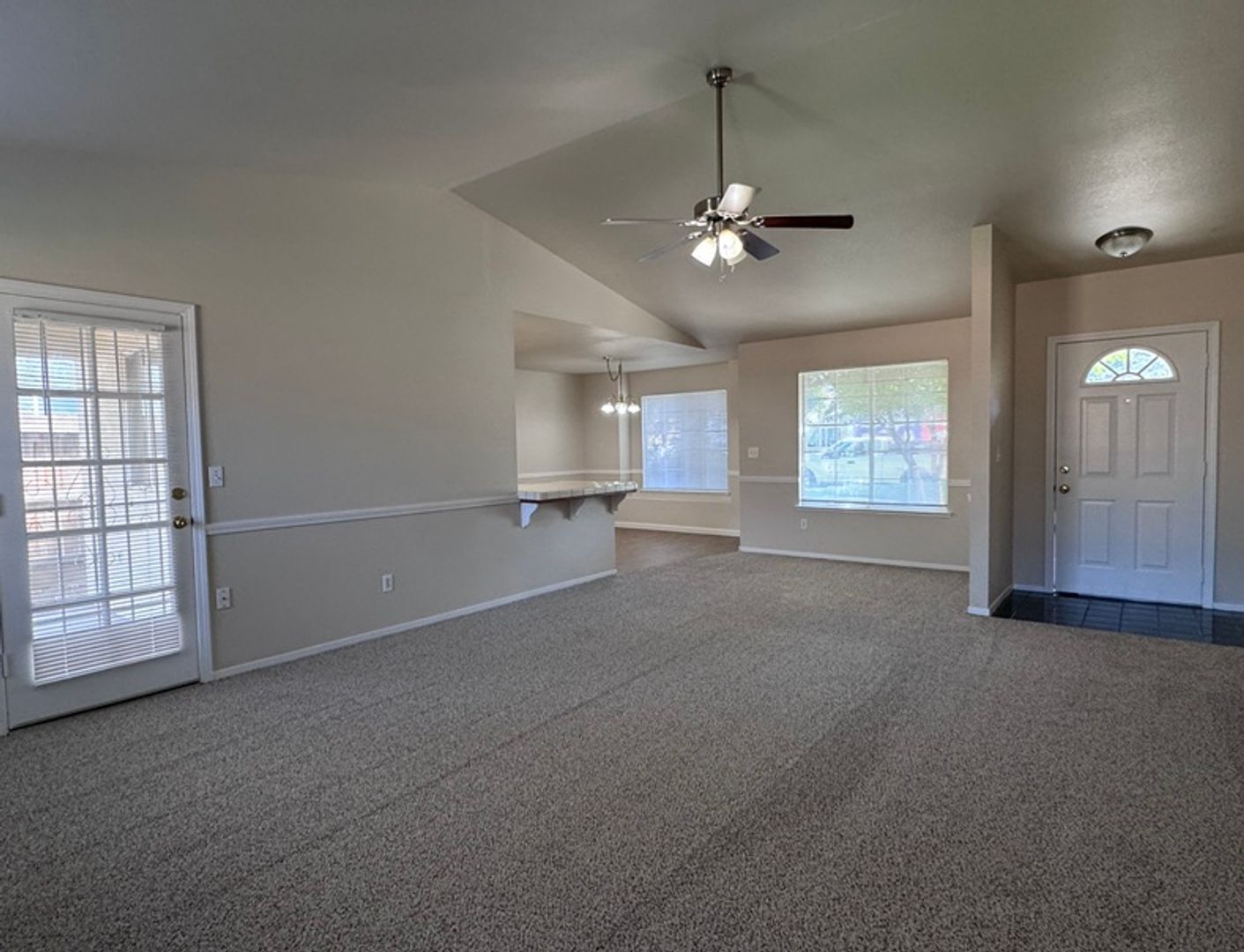 A comfortable 3-bedroom, 2-bath home with a spacious kitchen and a living room plus separate dining area ideal for everyday living. The property includes an inside laundry room and a two-car garage, and features a large backyard. Conveniently located close to schools, this residence combines practical layout and functional amenities for easy living. Yard care is included. Fireplace not to be used.