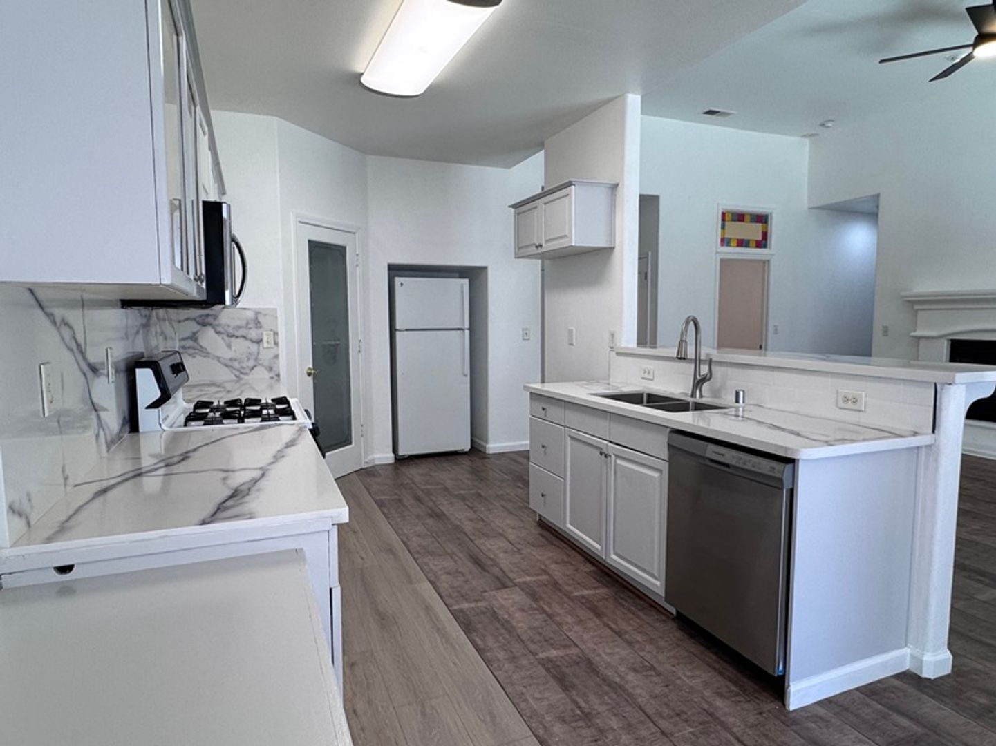 This spacious five-bedroom home offering flexible living space and convenient location. The residence features a generous living room, a dining area adjacent to a spacious kitchen, and an inside laundry room for everyday convenience. A versatile den can serve as an office, game room, or fifth bedroom. Outside, a large backyard provides ample room for outdoor activities, and a three-car garage offers plenty of storage and parking. Situated close to schools, restaurants, and shopping, this home combines functionality and location for comfortable living.