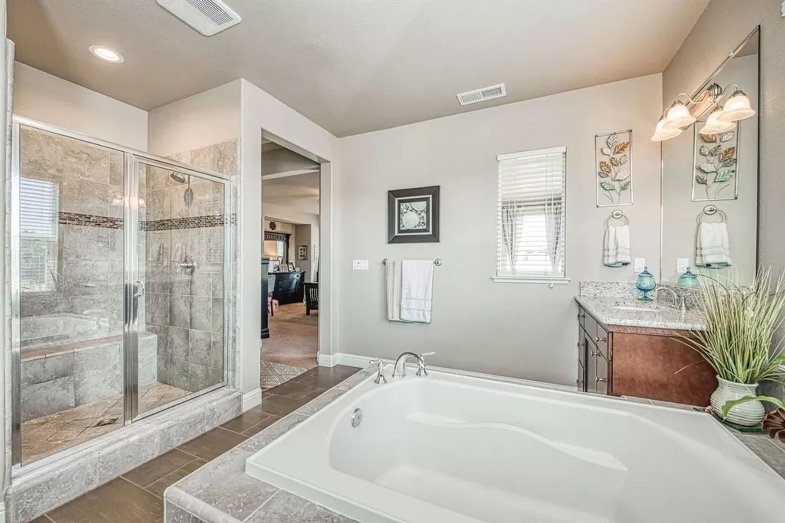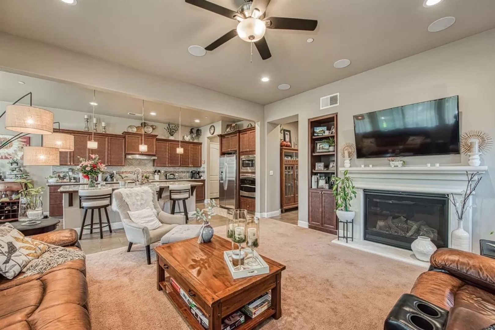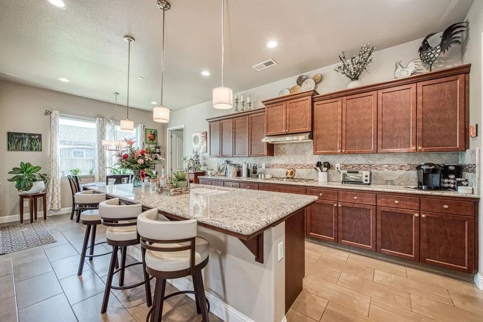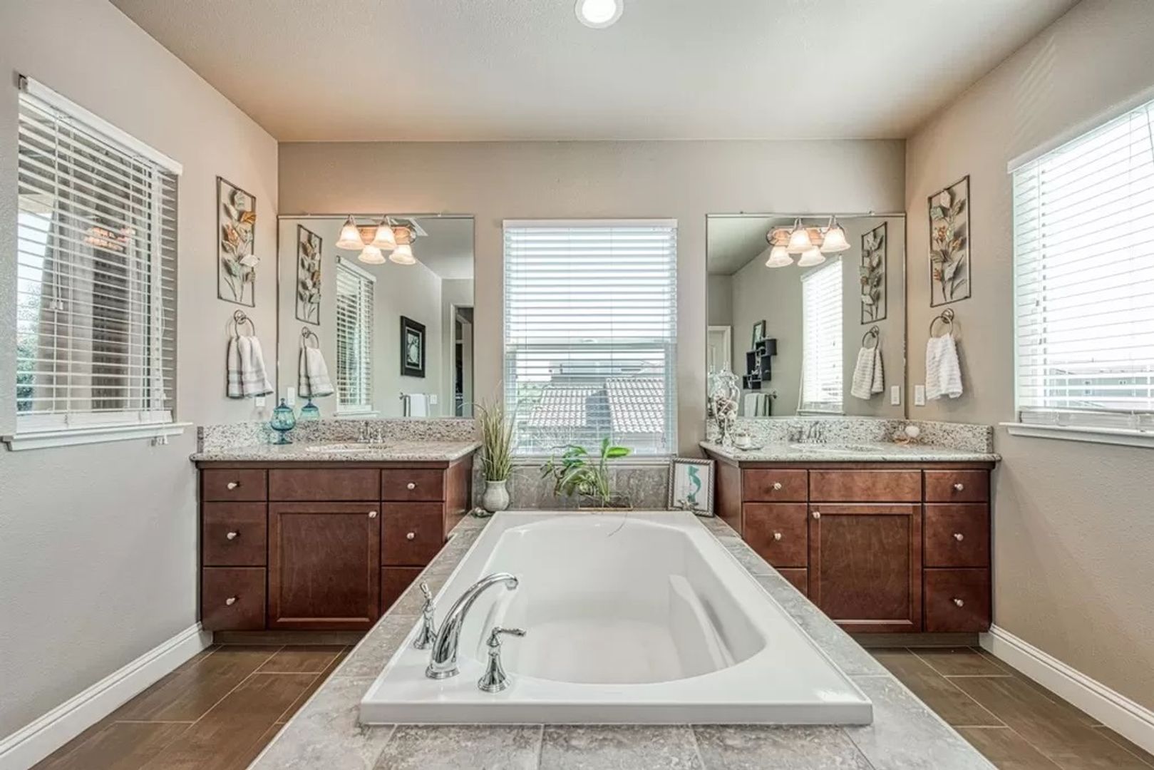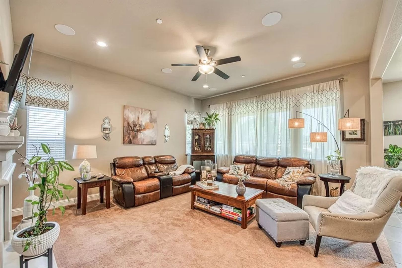 There is so much to be said about this gorgeous and spacious two-story home located in Clovis. It offers five bedrooms, four baths, two master suites (one downstairs and the other upstairs) and private access to the upstairs balcony from the master bedroom. There is a formal living room, family room, dining area, indoor laundry room, a large kitchen with granite countertops, a two-car garage and a large back yard. Close to trails, restaurants and shopping.