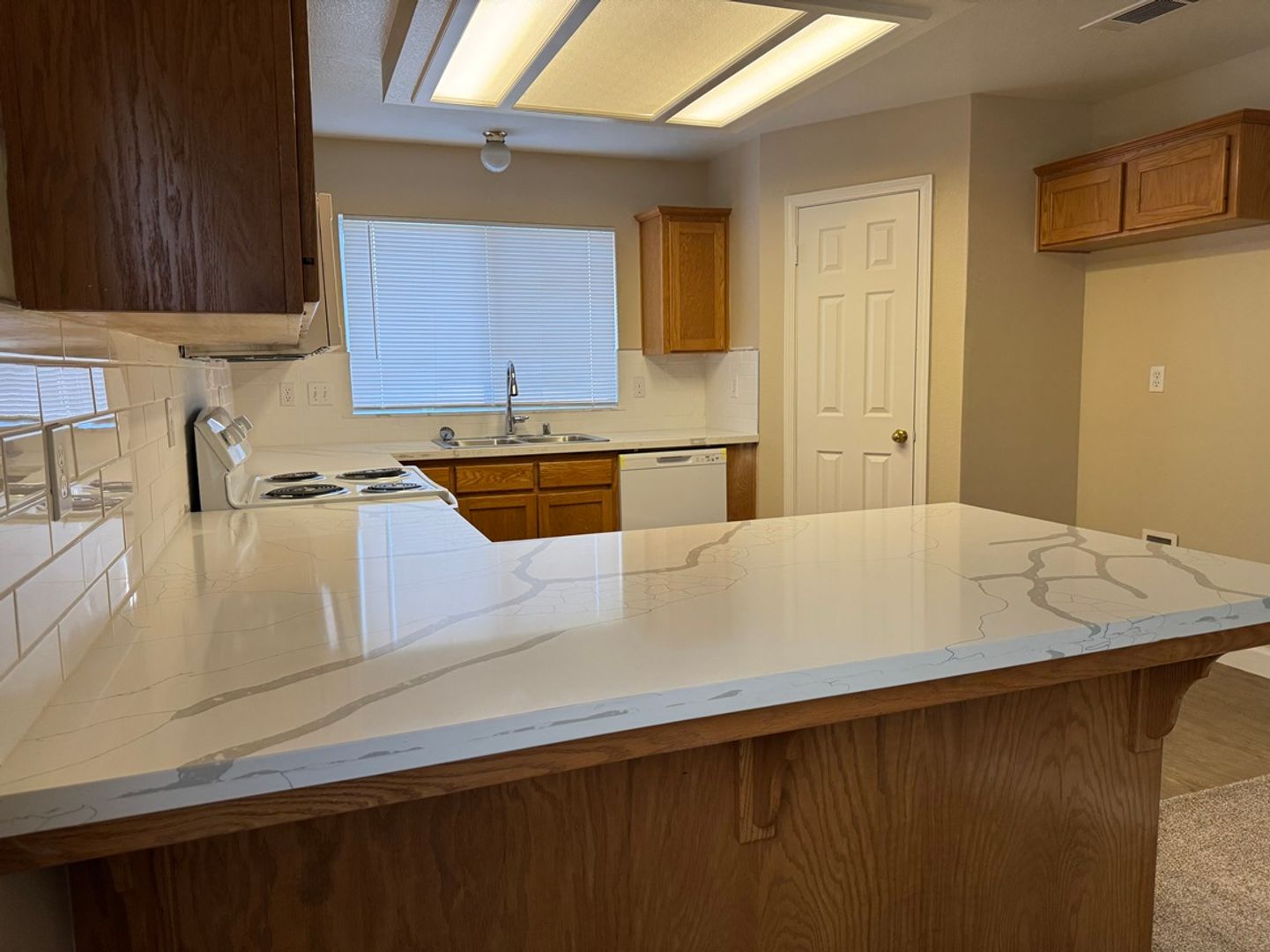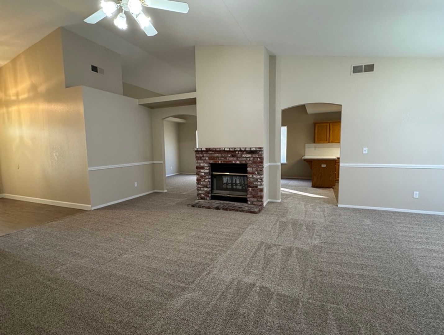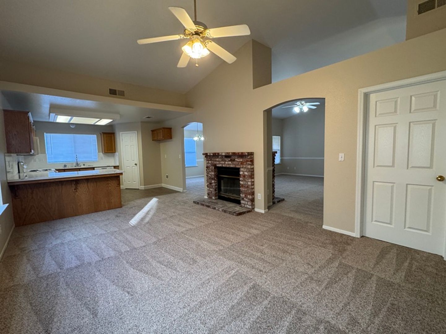 This home boasts four spacious bedrooms and two full bathrooms, perfect for comfortable living. The large living room and family room provide ample space for relaxation and entertainment. The kitchen, complete with a new countertop and brand-new appliances, is a cook's dream. The dining area is conveniently located, making meal times a breeze. The property also features a laundry room, adding to its practicality. The two-car garage offers plenty of storage or parking space. Step outside to a large backyard with a covered patio, perfect for outdoor activities or simply enjoying the California sun. The home's location is a bonus, with schools in close proximity. Experience the perfect blend of comfort and convenience at 4614 W. Flint Way.